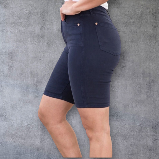 Judy Blue High-Waisted Navy Blue Stretch Denim Bermuda Shorts