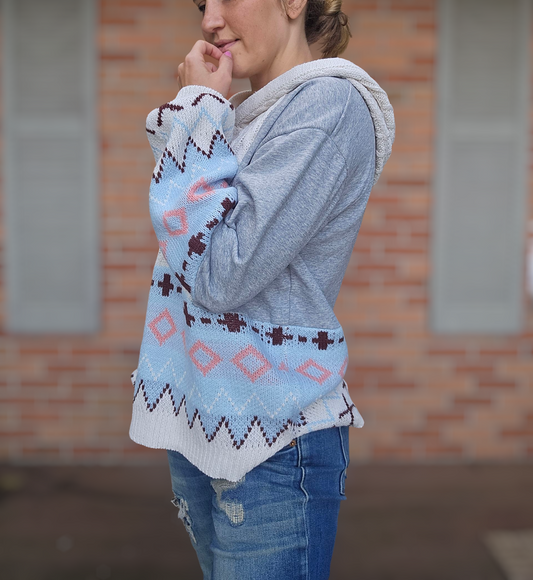 Easel Hooded Patterned Grey Sweater