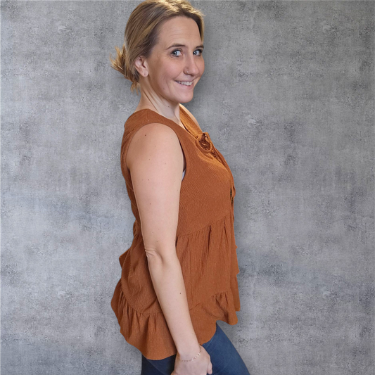 Sleeveless Tiered Babydoll Top – Rust Brown