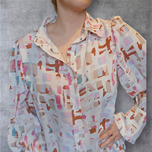 Sold outAbstract Print Button-Up Blouse