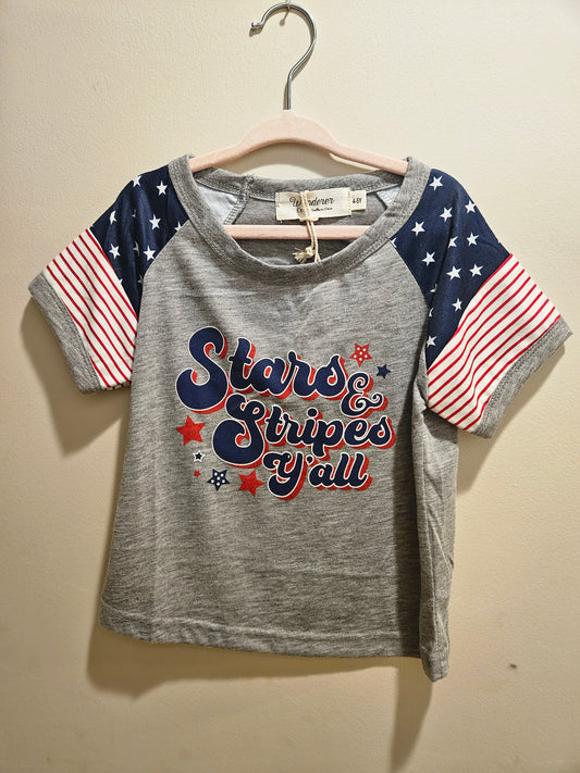 Girls Grey and Stars and Stripes Graphic Tee