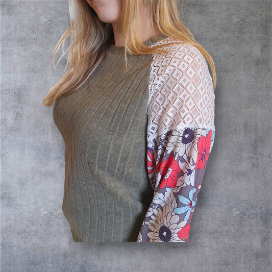 Olive Green and Floral Top