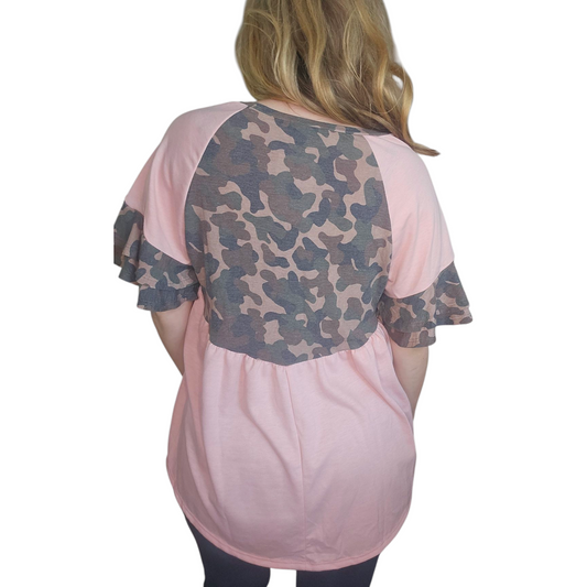 Camouflage and Pink Babydoll Top