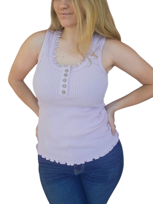 Rose Pink Tank Top with Ruffle Detail and Scalloped Bottom