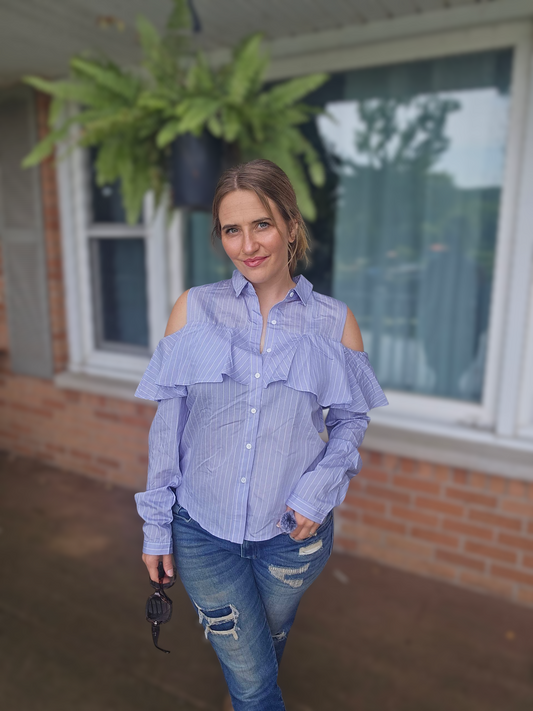 Cold-Shoulder Ruffle Blouse